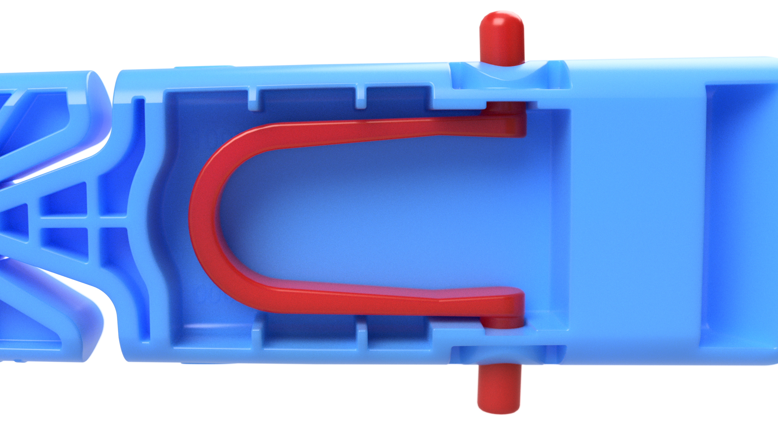 Glass filled injection molded nylon (21,000 psi tensile strength, 84 Shore D). Note bone = 90 Shore D.